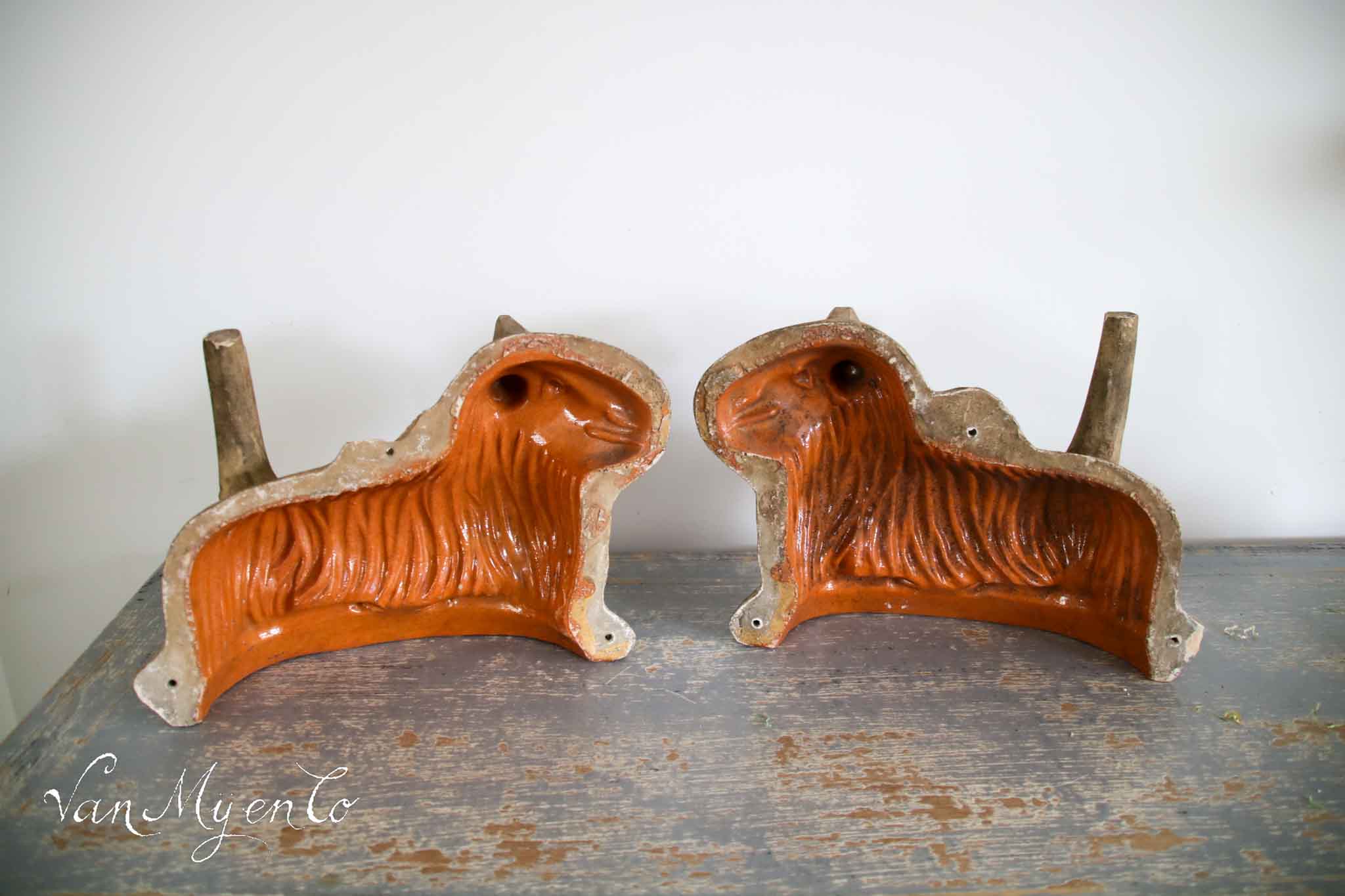 Prachtig aardewerken antiek paaslam uit de Elzas.