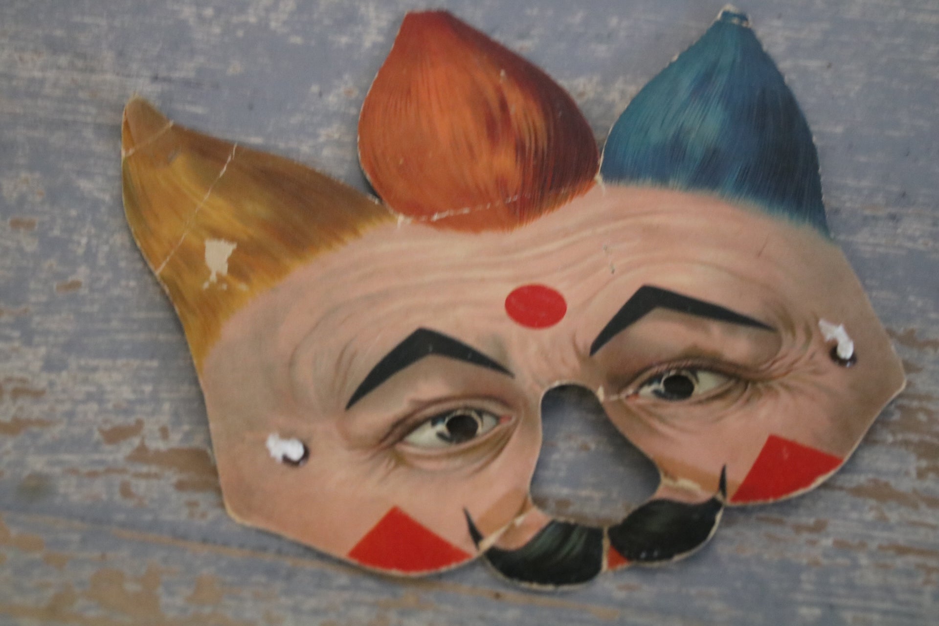Dit antieke masker van een clown dateert uit het begin van 1900.