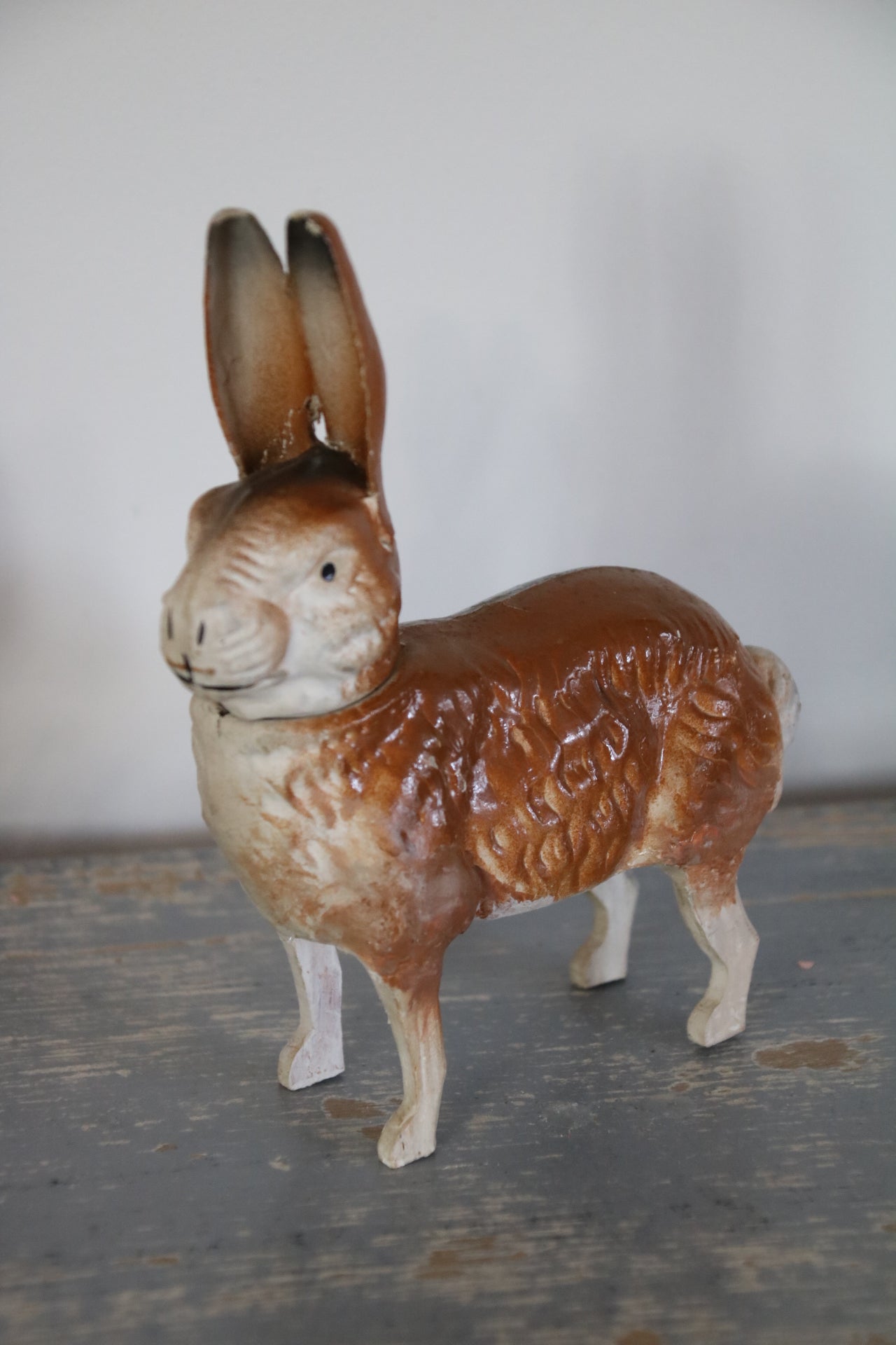 De haas heeft houten pootjes.