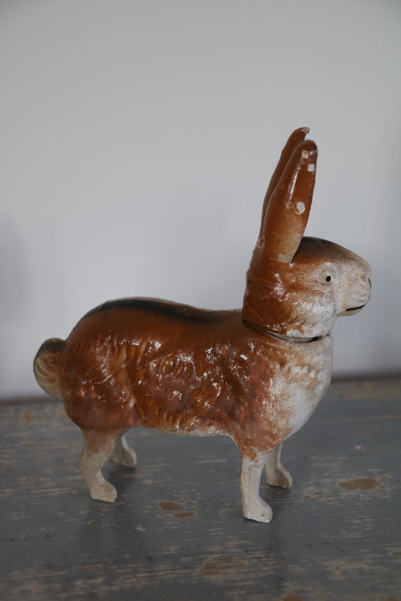 Hij heeft van ouderdom wat sleetse plekjes, maar absoluut niet storend. Dat imperfecte heeft juist heel veel charme.