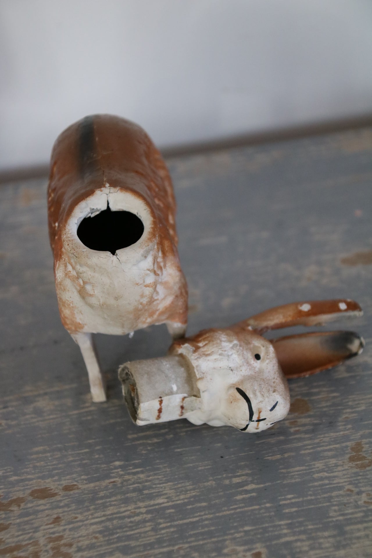 Mooie oude candycontainer van papier maché.