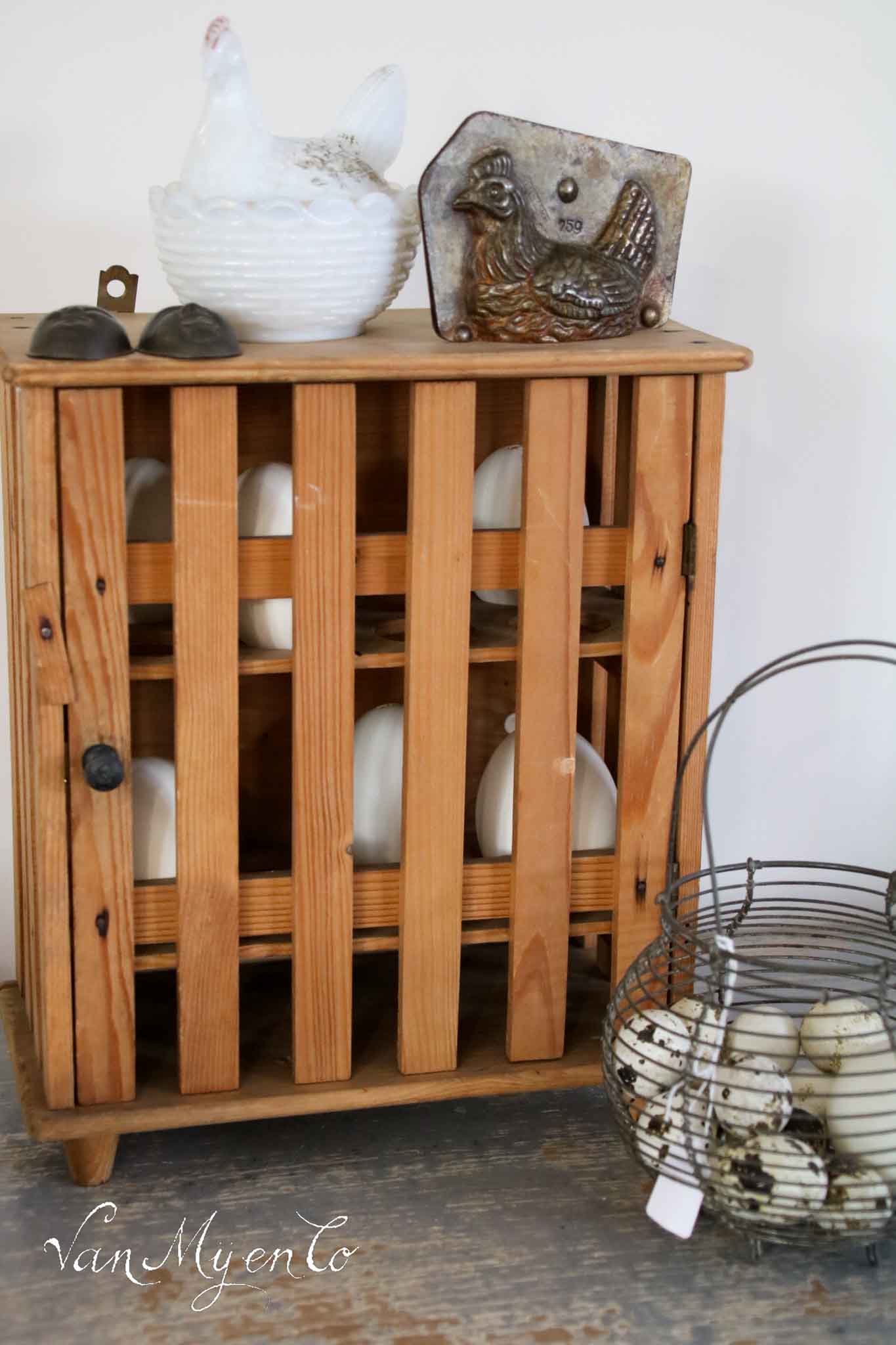 Decoratief oud eierkastje met plaats voor 16 eitejs.
