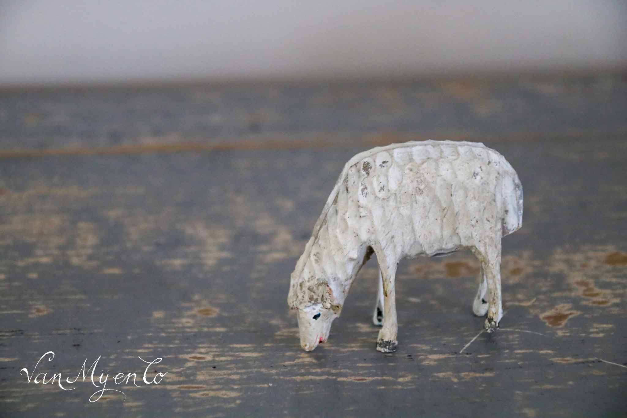 Prachtige houten schapen met de hand gesneden.