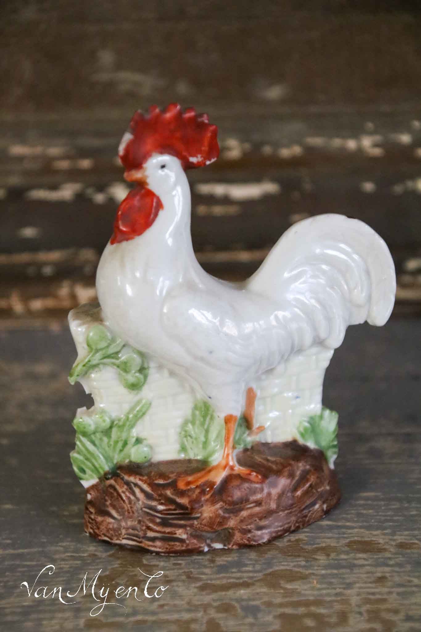 Mooi antiek beeldje van een porseleinen haantje.