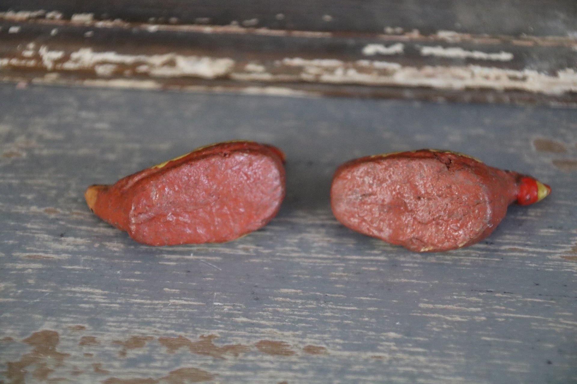 Deze oude kippetjes van papier maaché zijn erg decoratief.