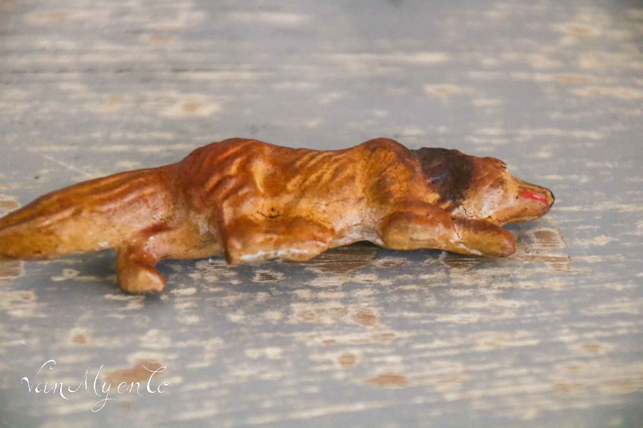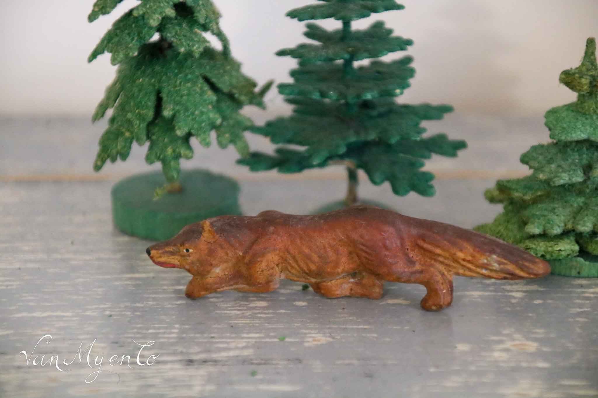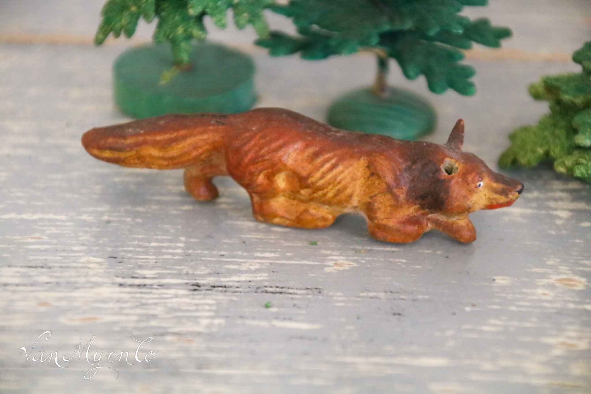 Oud vosje van komposiet. Het vosje mist zijn rechter oortjeLengte: 9 cm