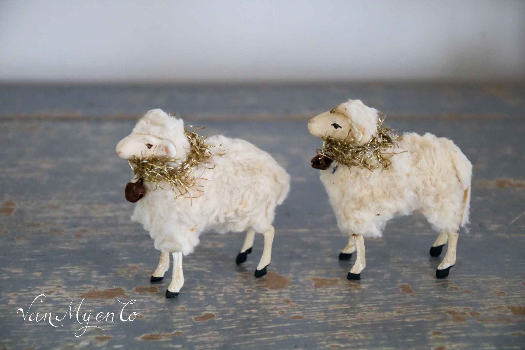 Ze zijn heel decoratief, deze wolschaapjes met papier maché pootjes en hoofje van gips.