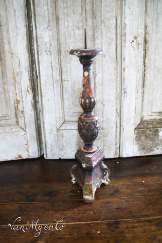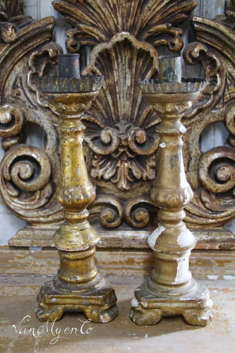 Antiker Kerzenständer in Weiß mit Blattsilber