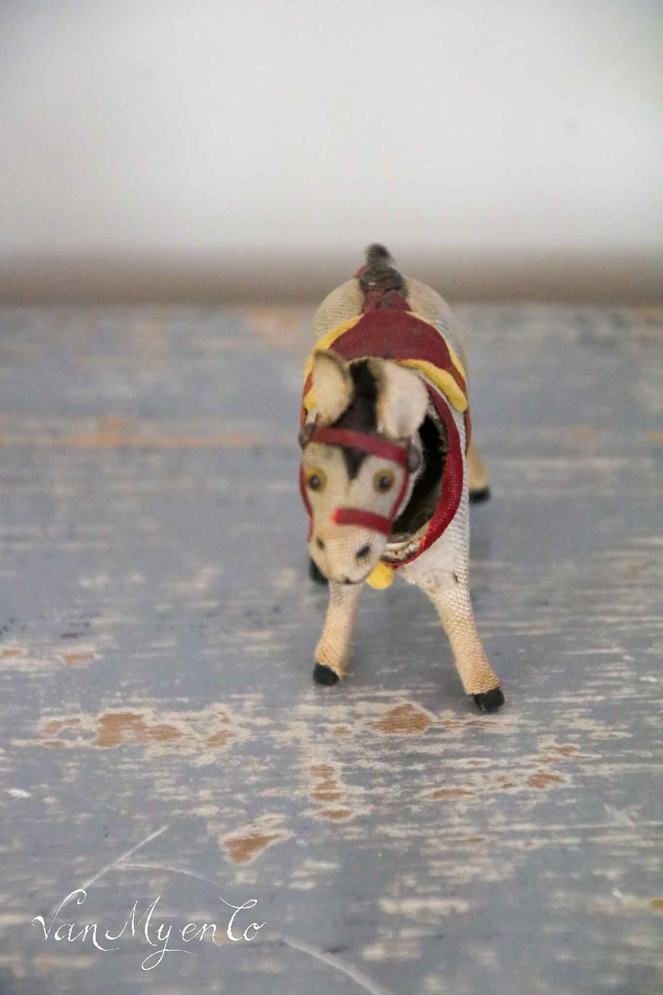 Der Körper besteht aus Pappmaché, die Beine aus Holz.