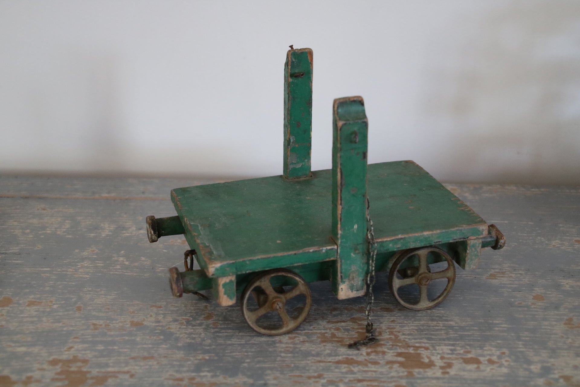 Wunderschöner antiker Eisenbahnwaggon aus Holz mit eisernen Speichenrädern.