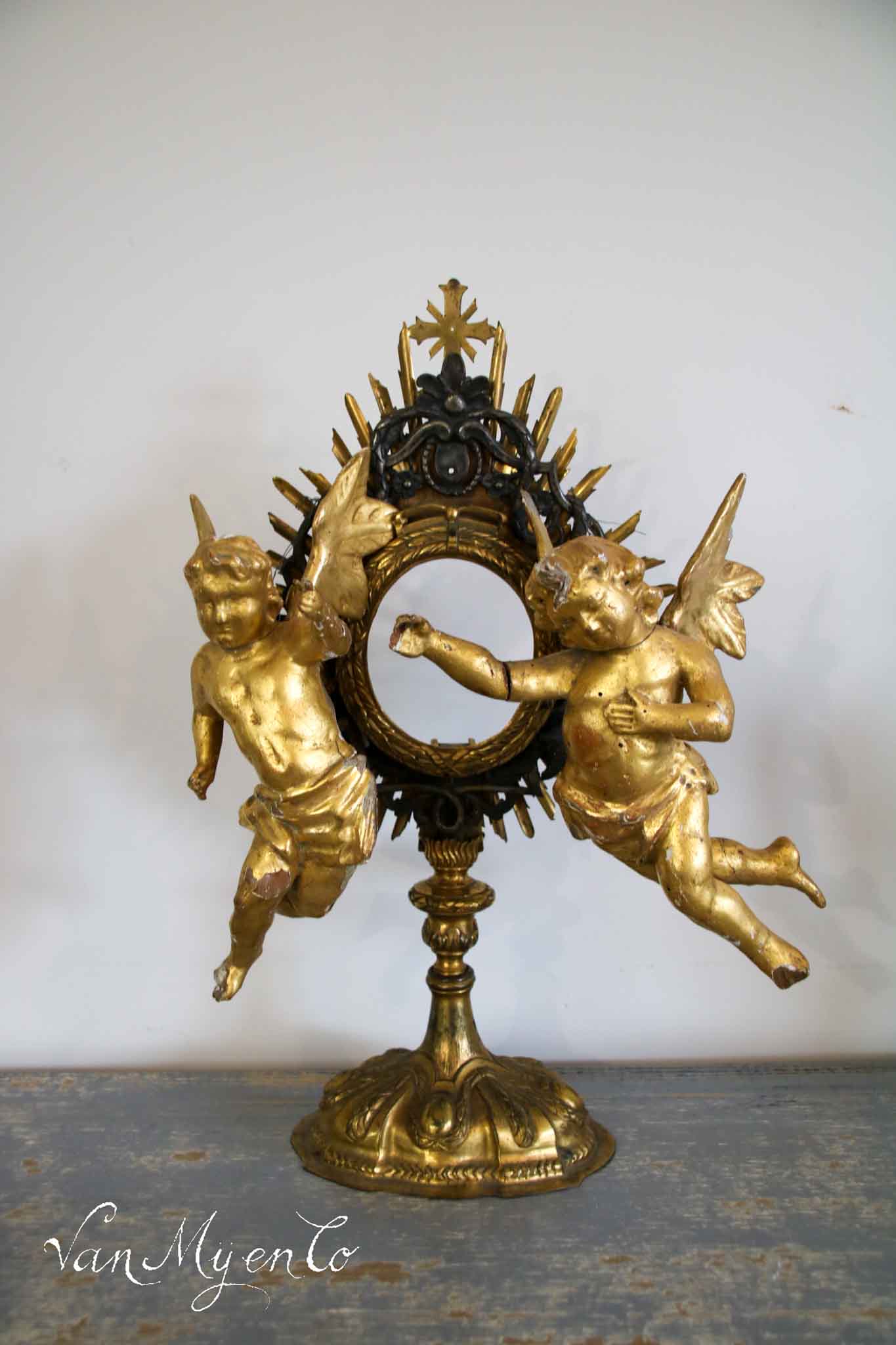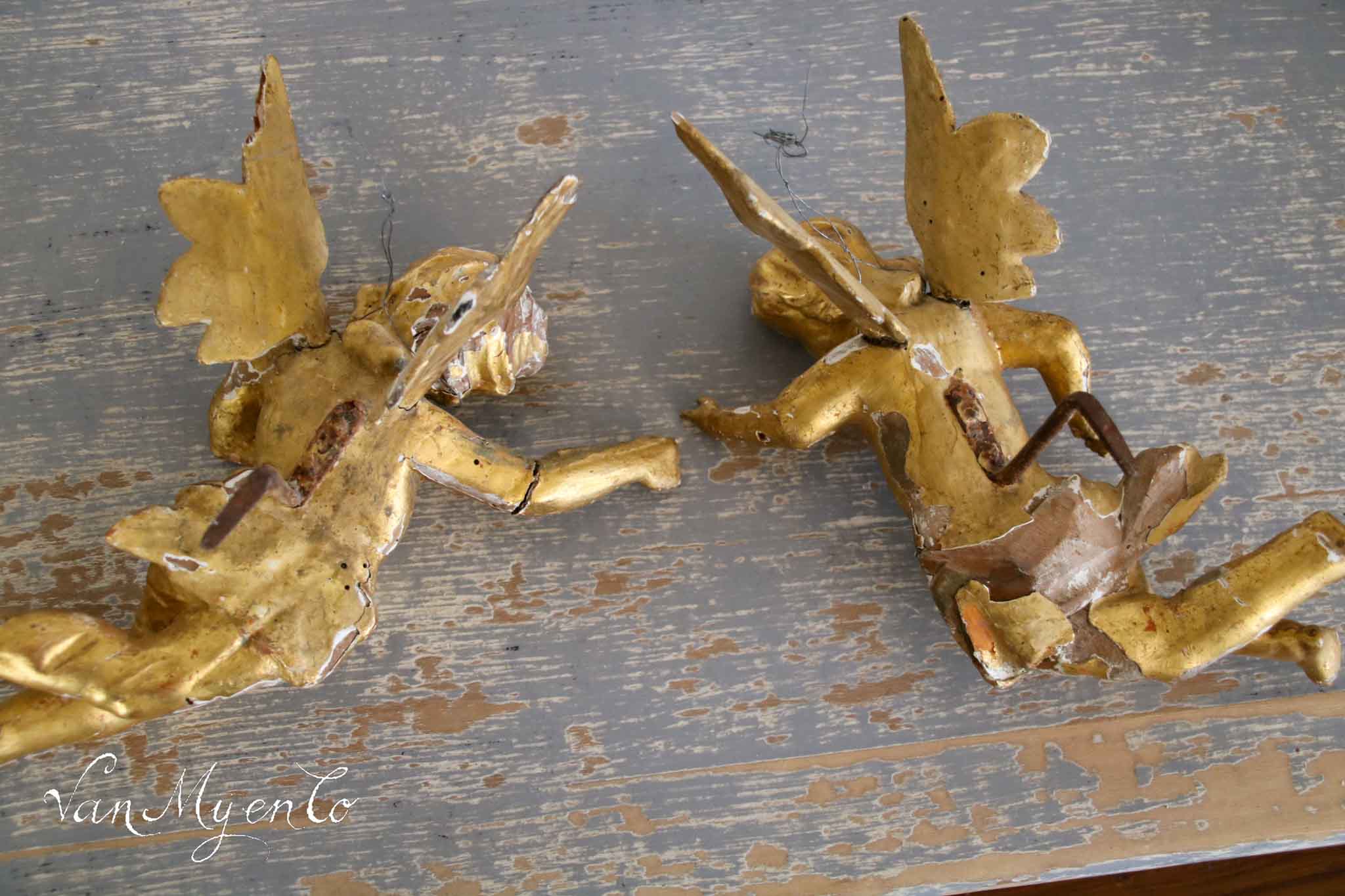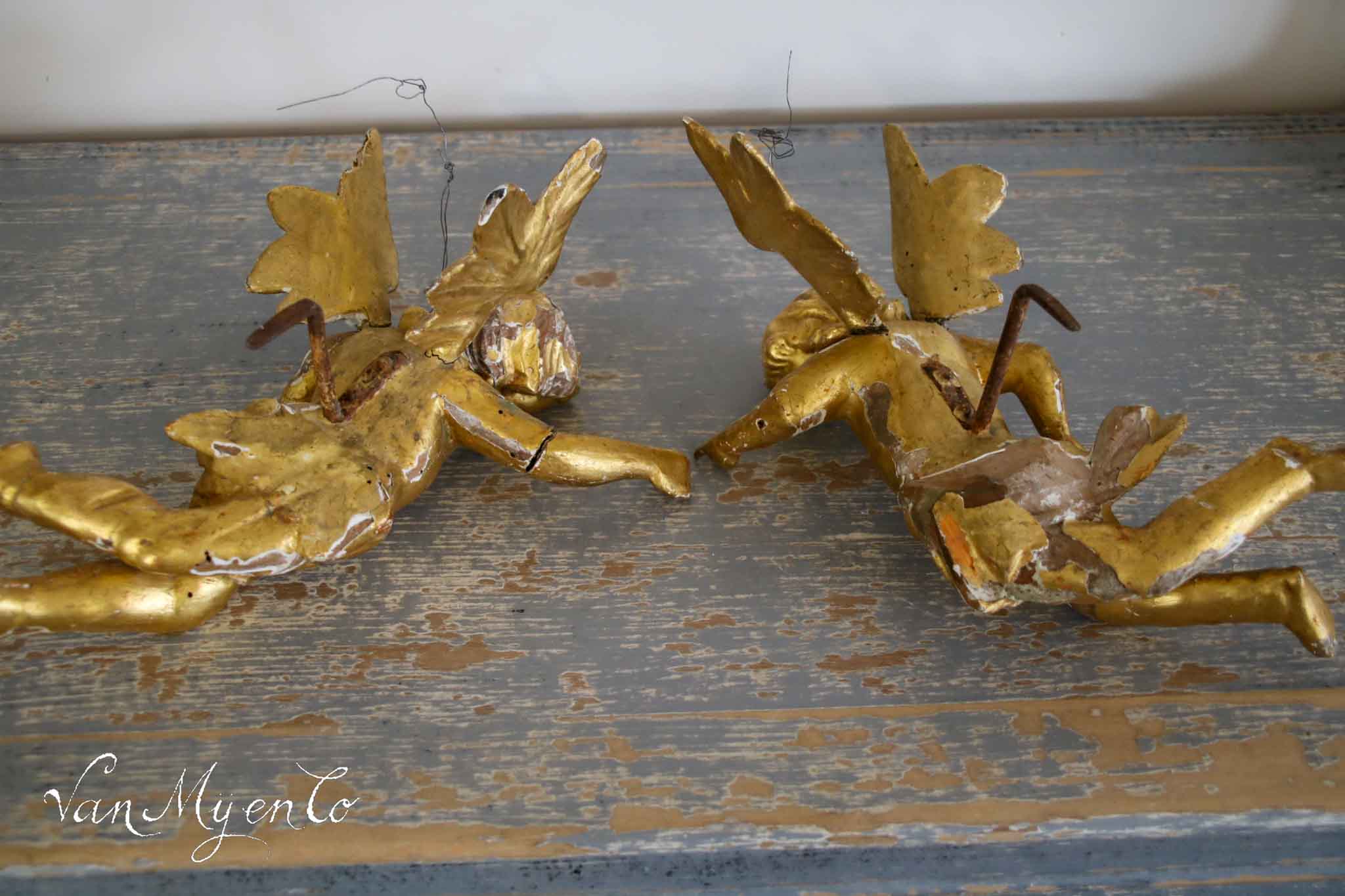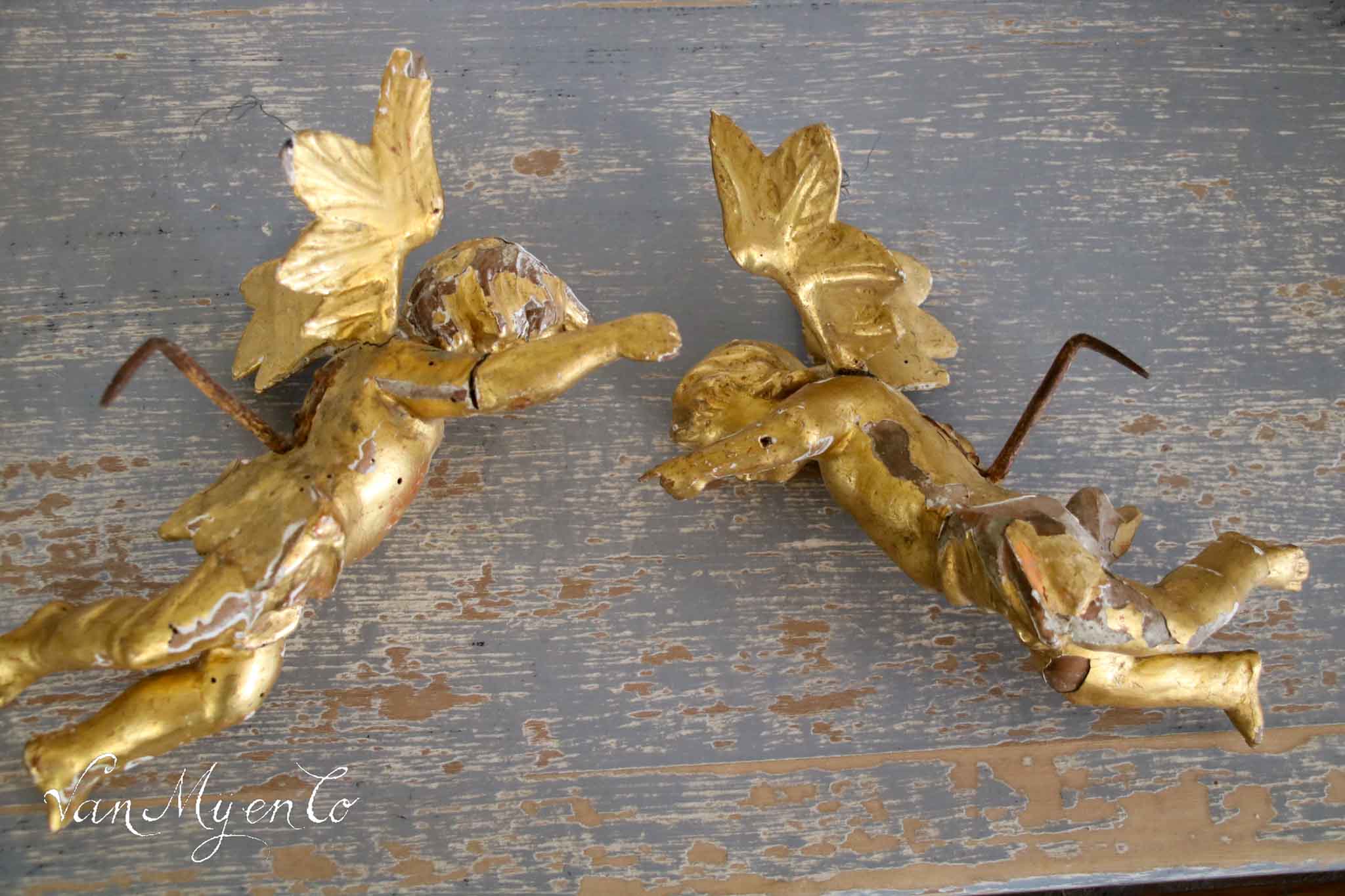 Wunderschöne antike, kunstvoll geschnitzte Holzengel mit einer Bois-Doré-Schicht (vergoldet).