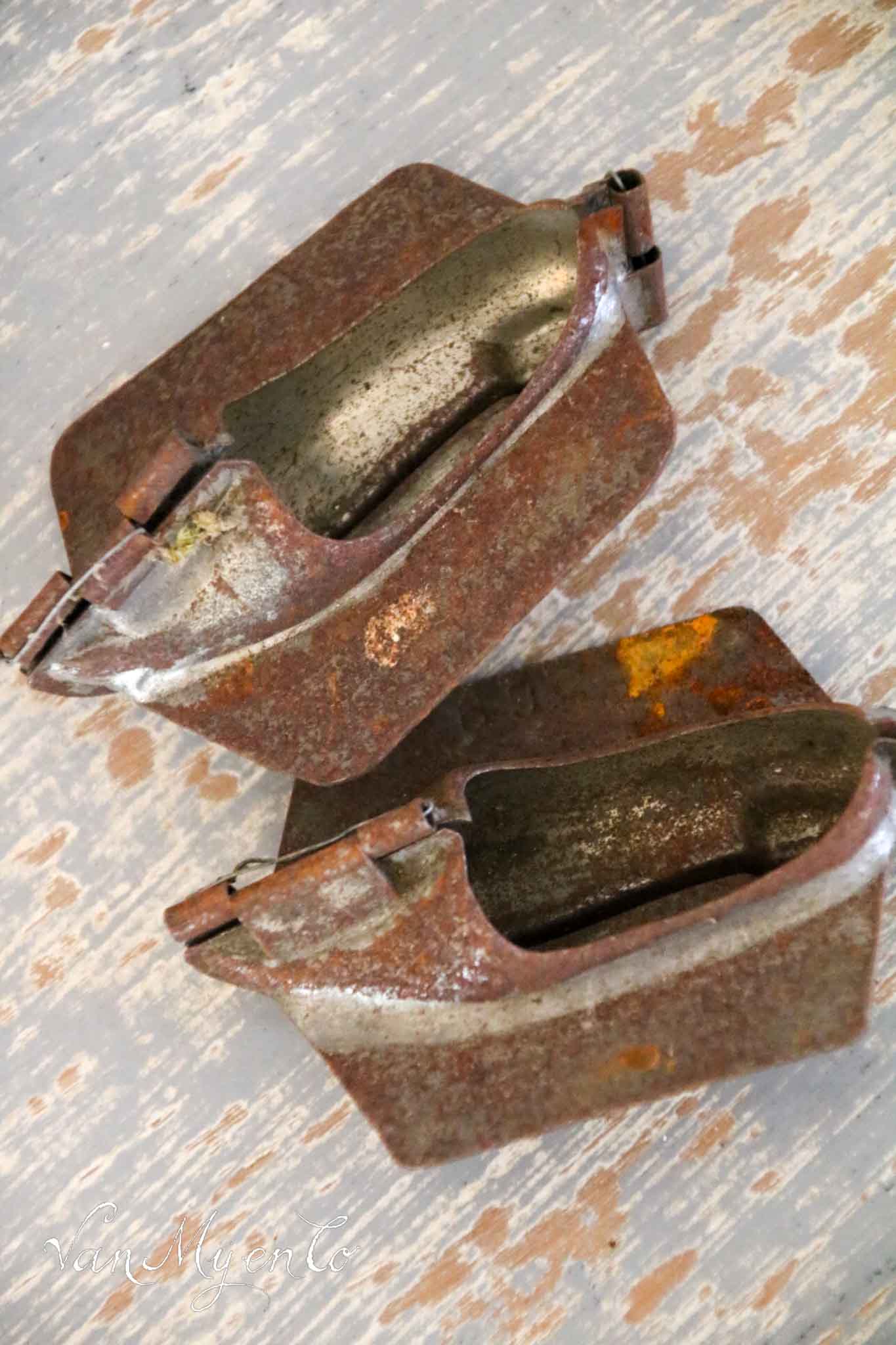 Diese doppelten Schokoladenformen aus Holzschuhen sind ziemlich alt. Sie stammen aus den Jahren 1920-1930.