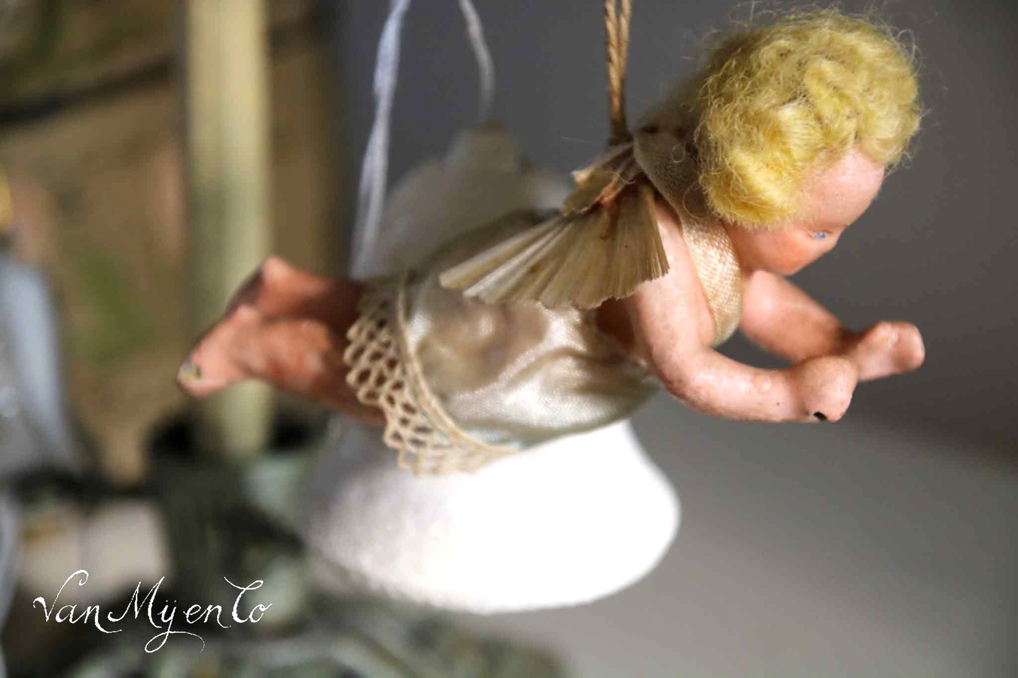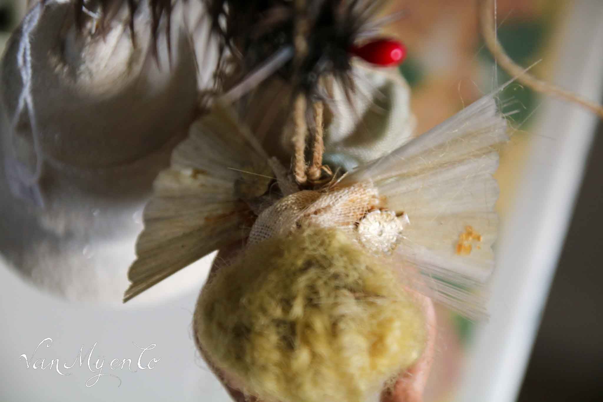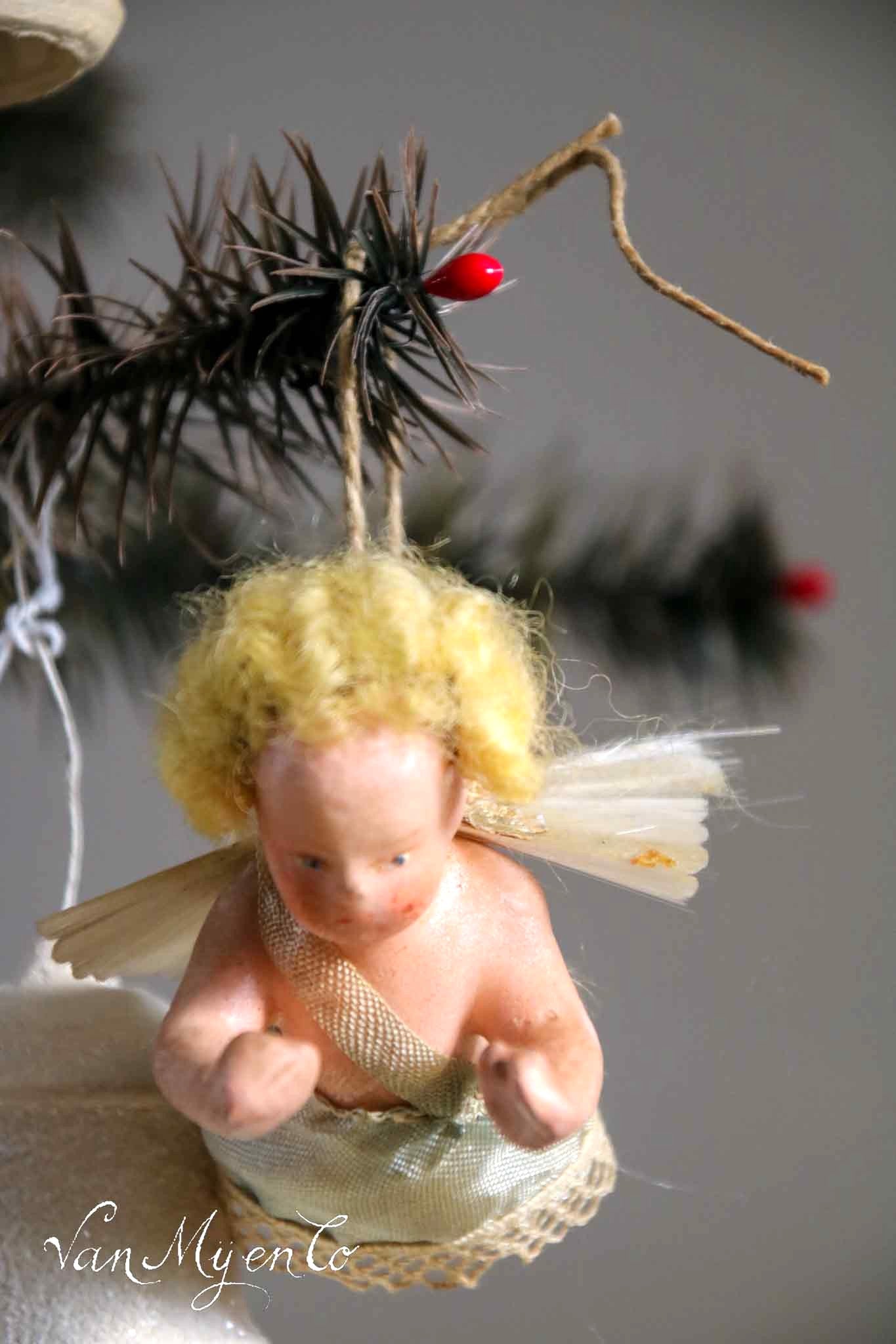 De vleugeltjes zijn van glasdraad, zoals de oude kerstboomvogeltjes dat ook hebben.