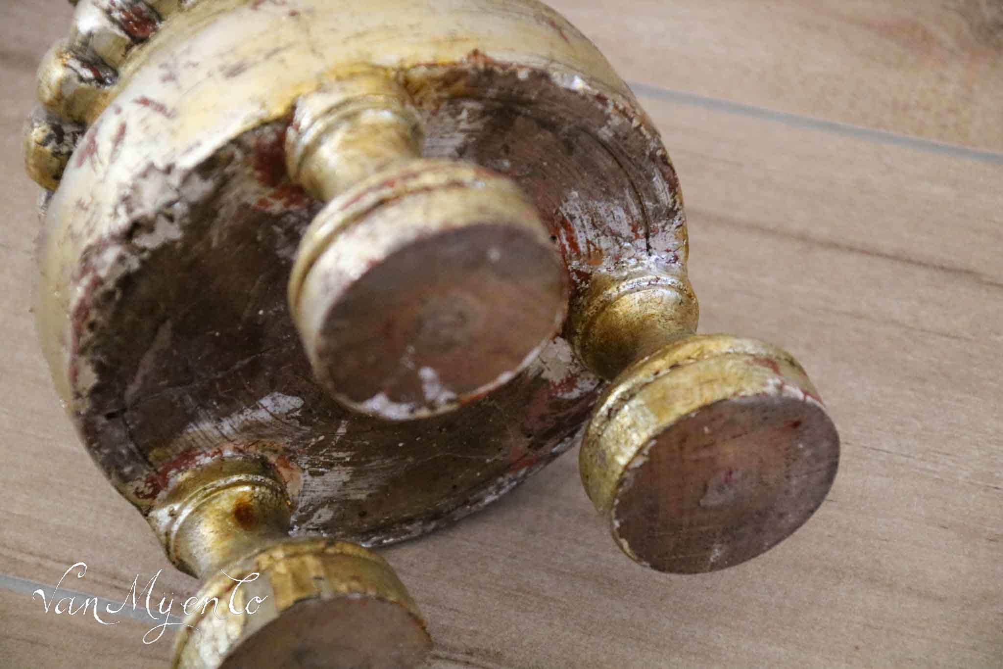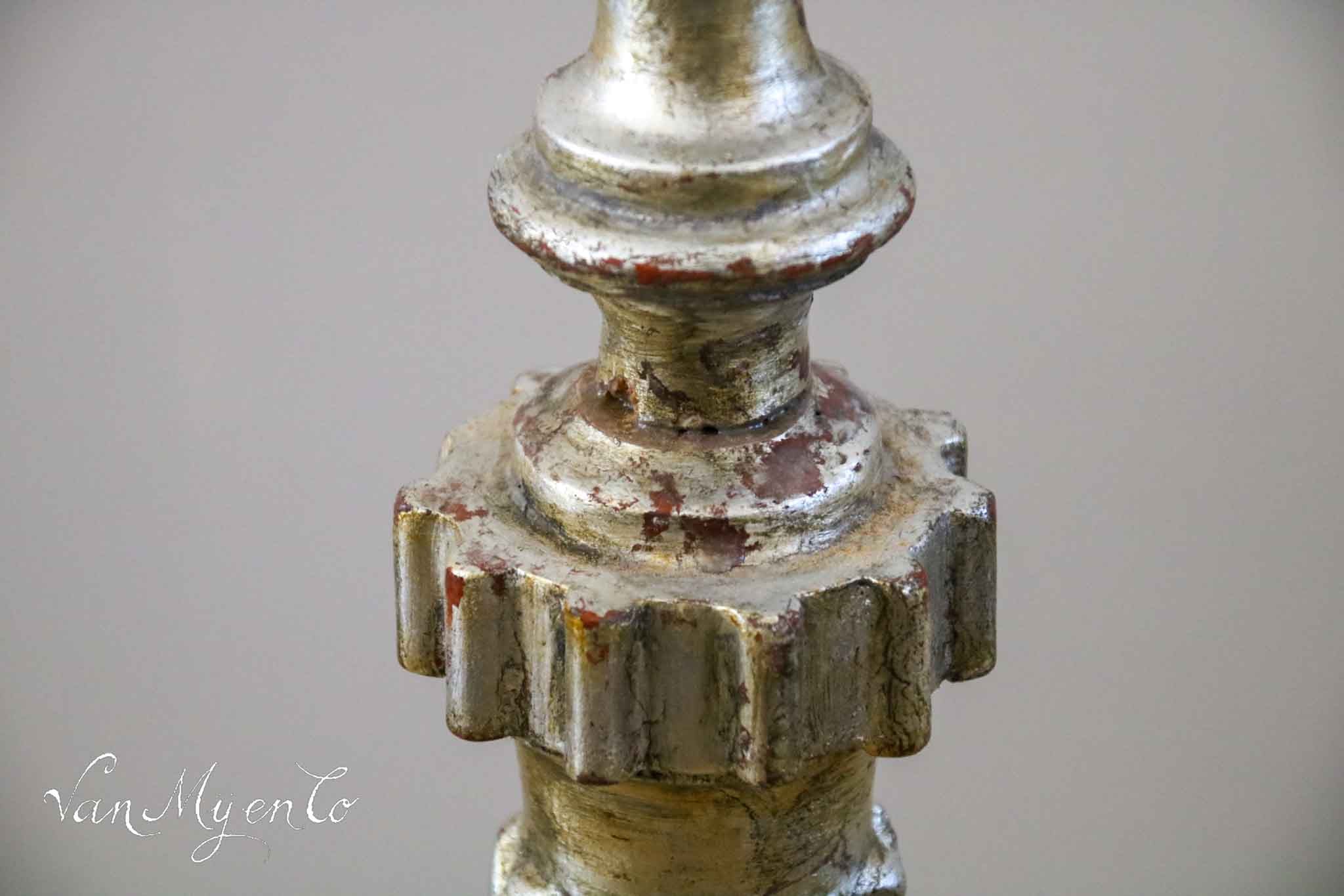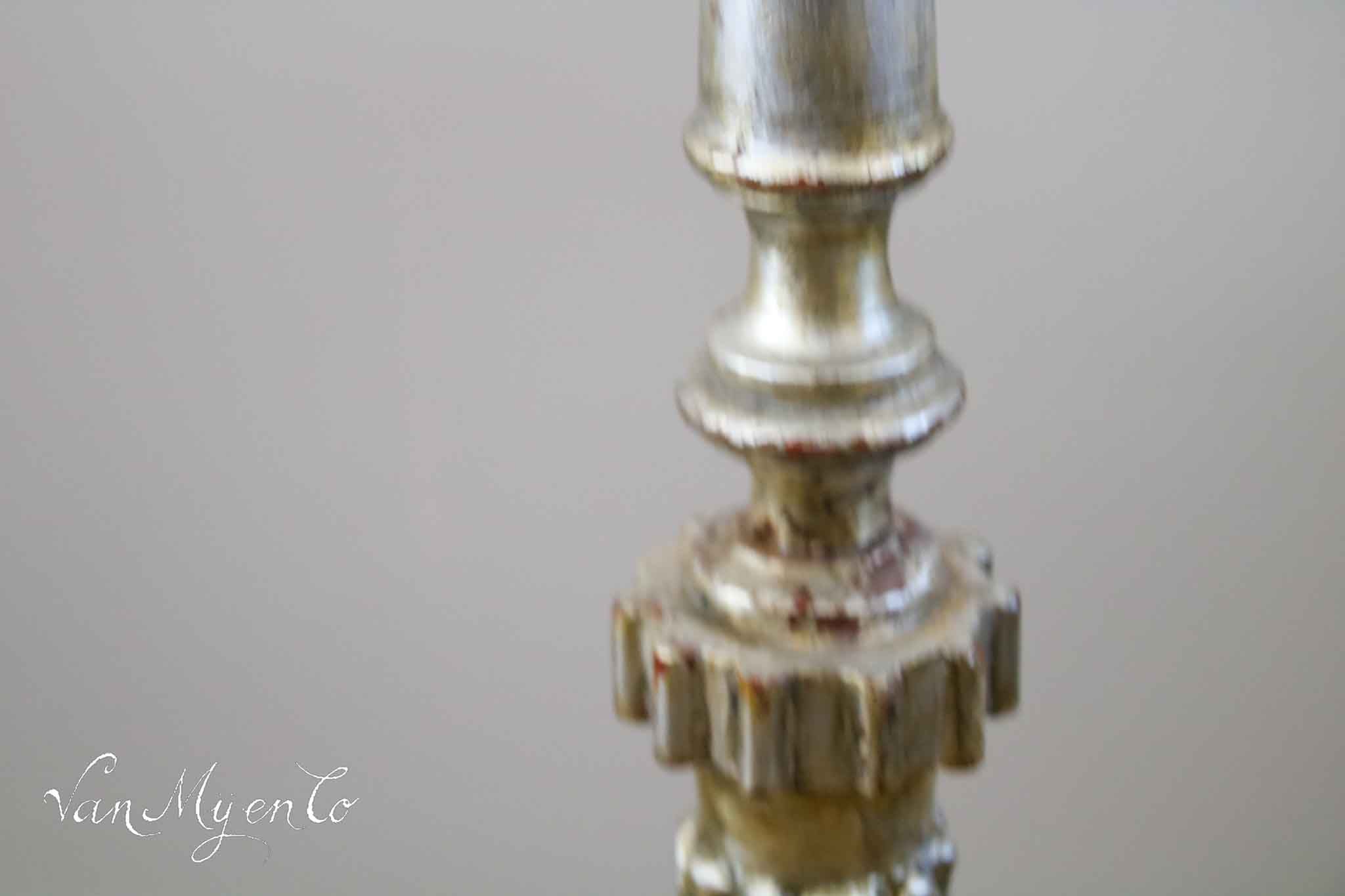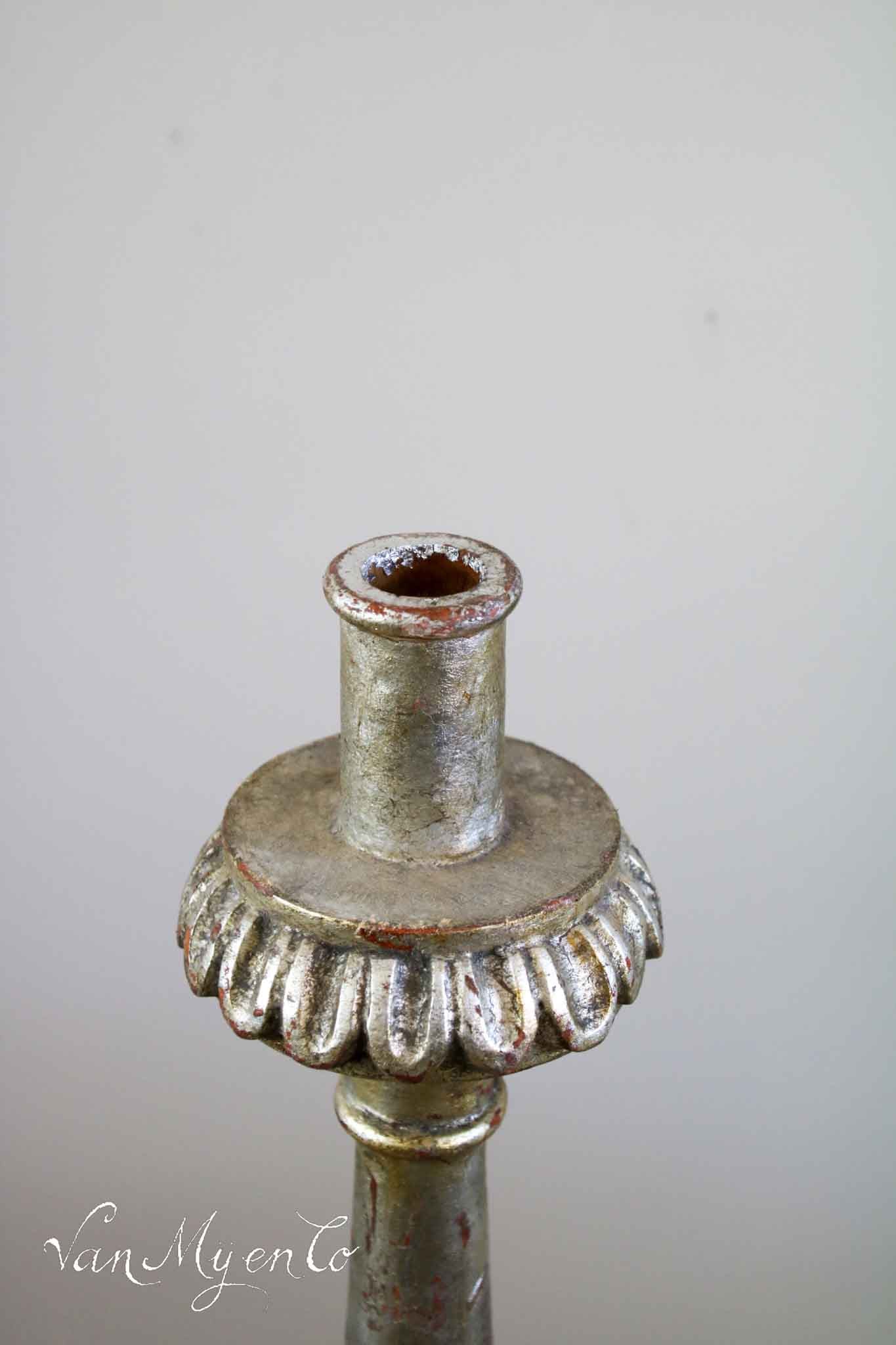 Sehr schöner antiker versilberter Kerzenständer aus Holz mit schöner Schnitzerei.