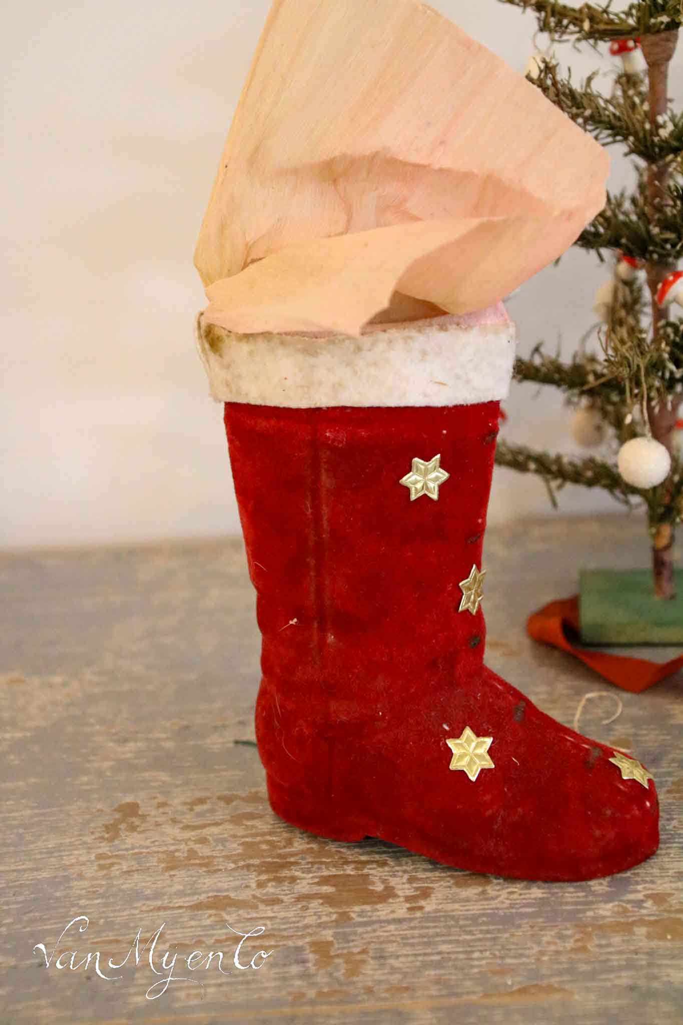 Dieser Bonbonbehälter aus Pappmaché ist mit einer Flockschicht versehen.