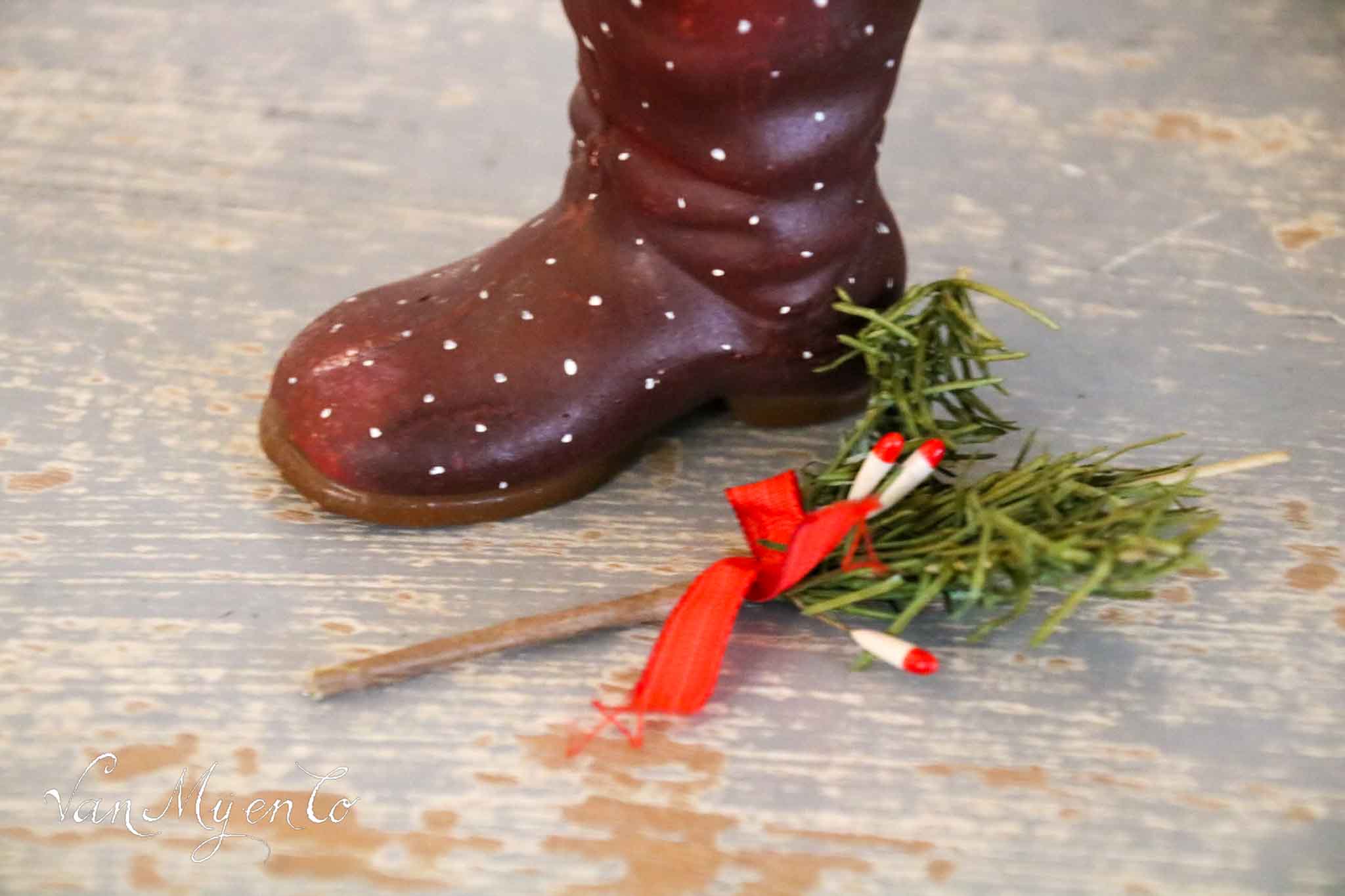 Der Weihnachtsstiefel besteht aus einem Verbundmaterial, wodurch er etwas feiner ist als Pappmaché.