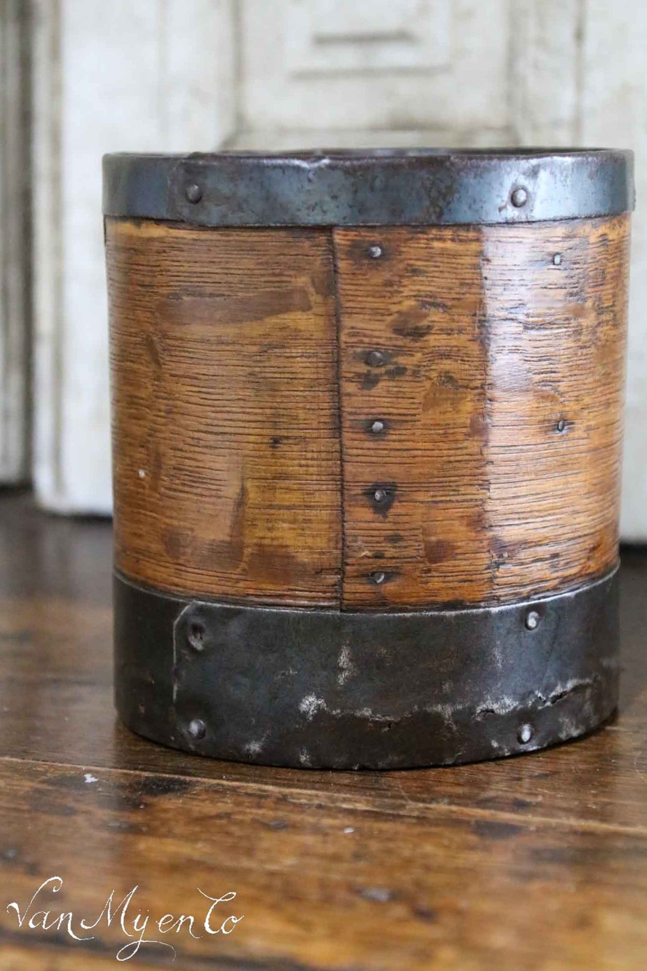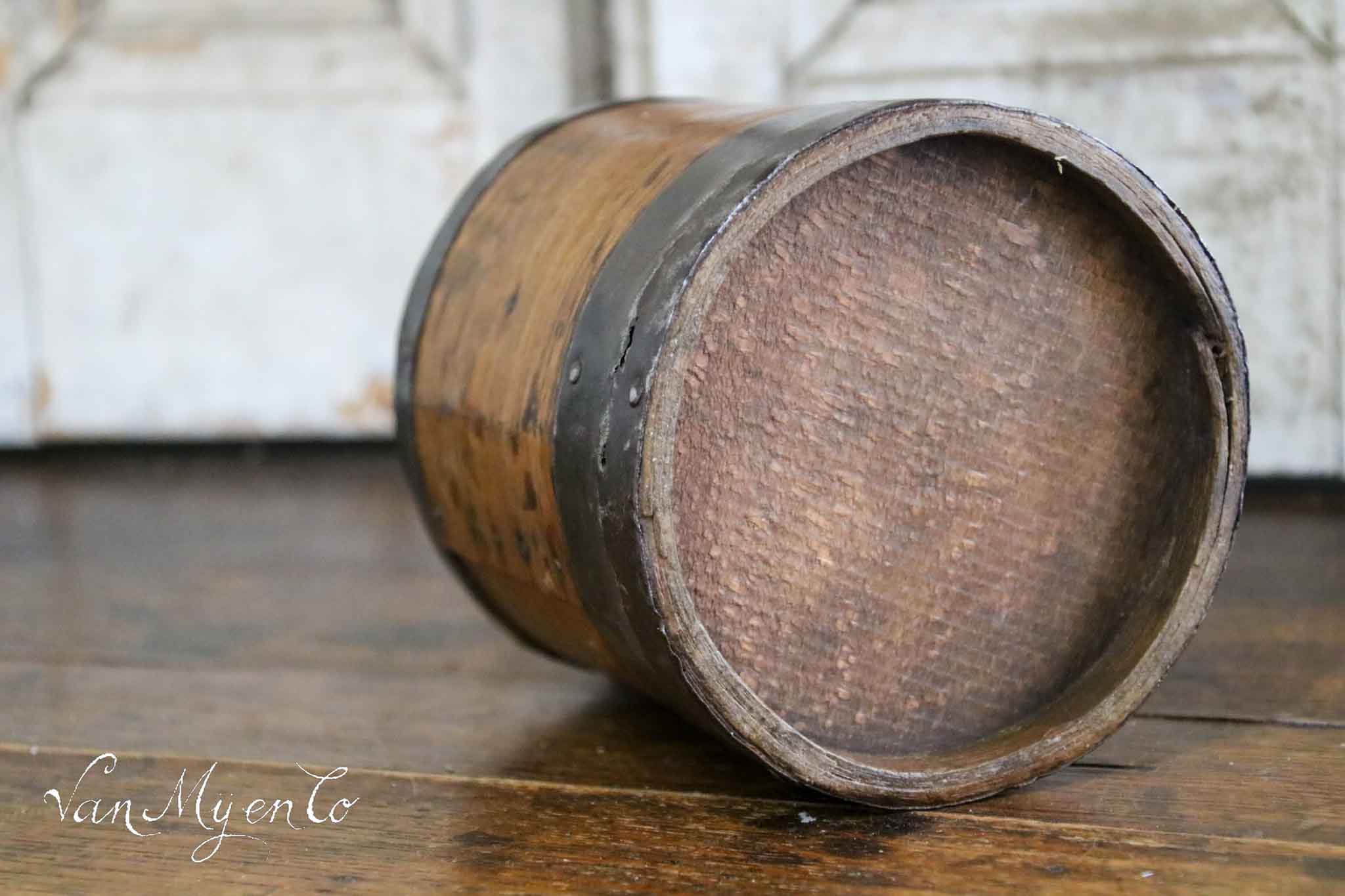 Dieser sehr kleine antike Holzschlamm mit Eisenbändern ist etwas ganz Besonderes.