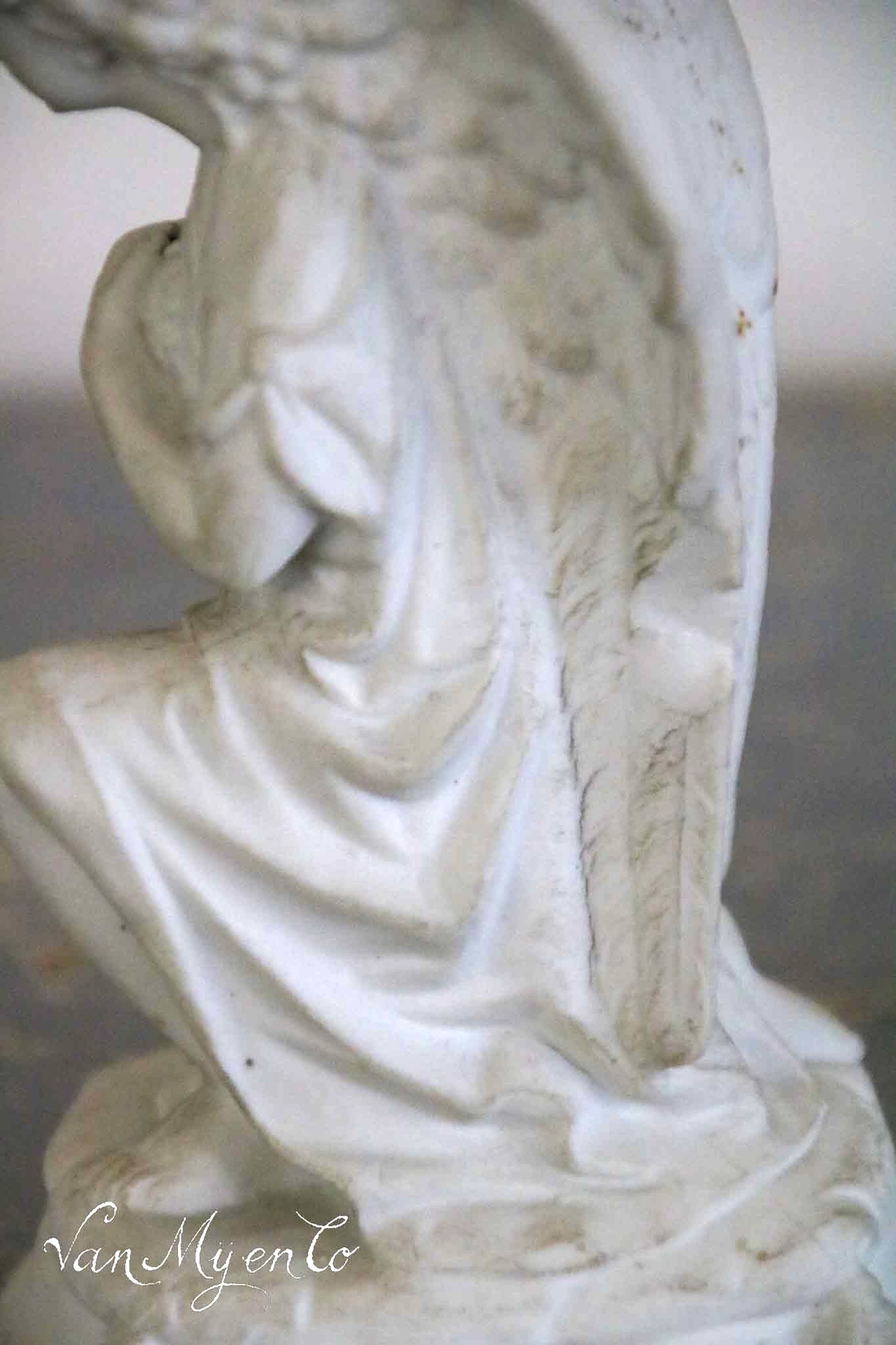 Einem Engel fehlt ein kleines Stück am unteren linken Flügel. Es ist kaum zu erkennen.