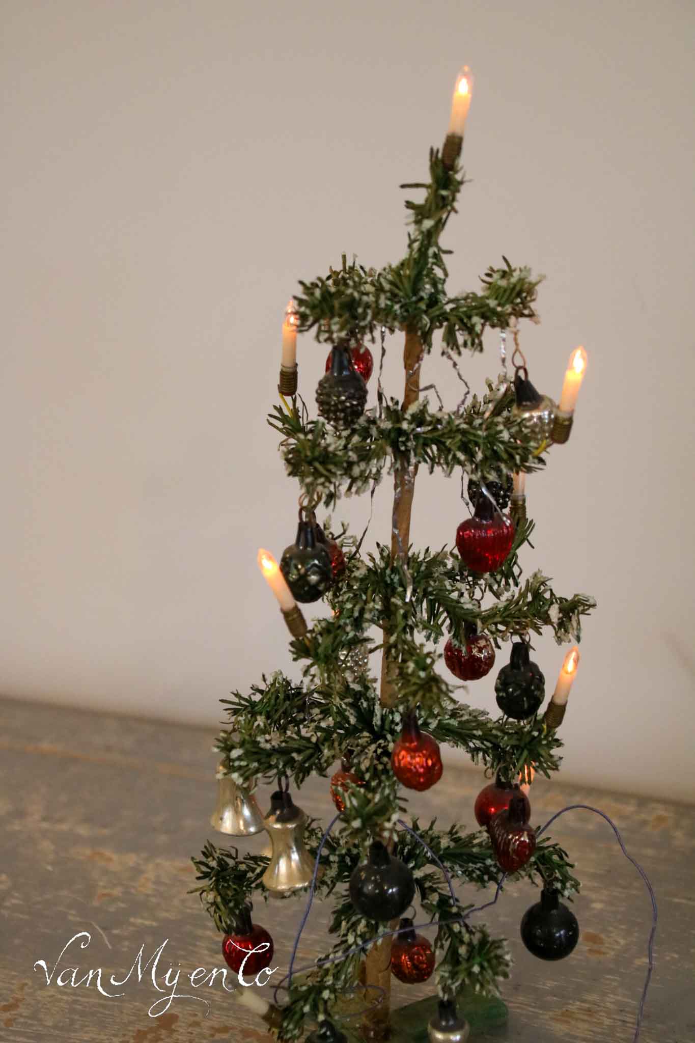 Der Baum ist mit Papiernadeln geschmückt und trägt nicht weniger als 22 echte, alte Glaskugeln. Viele der Kugeln sind in Form von Glocken, Tannenzapfen, Nüssen und Herzen gestaltet.