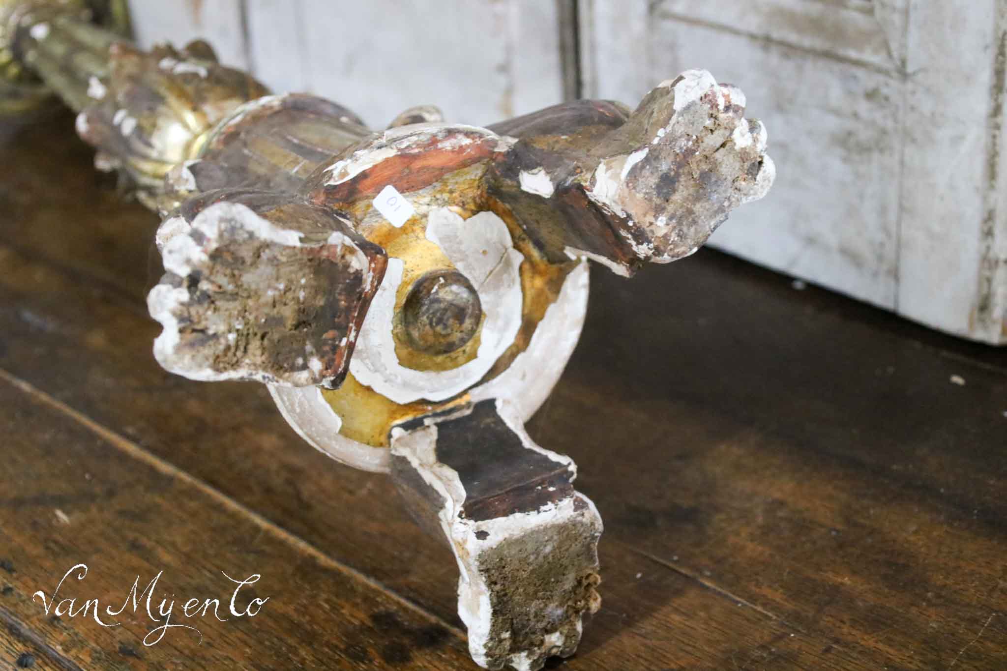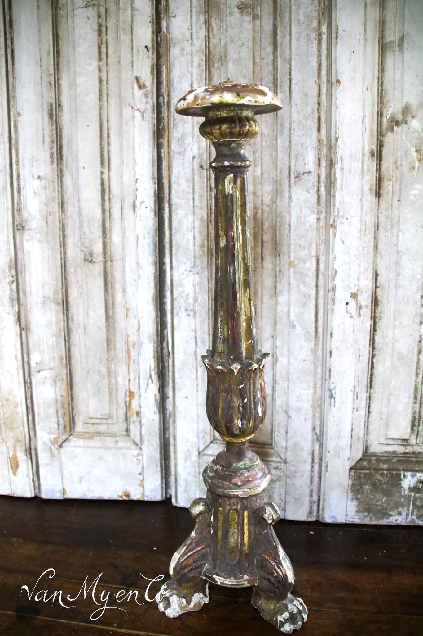 Wunderschöner antiker Kerzenständer aus vergoldetem Holz.
