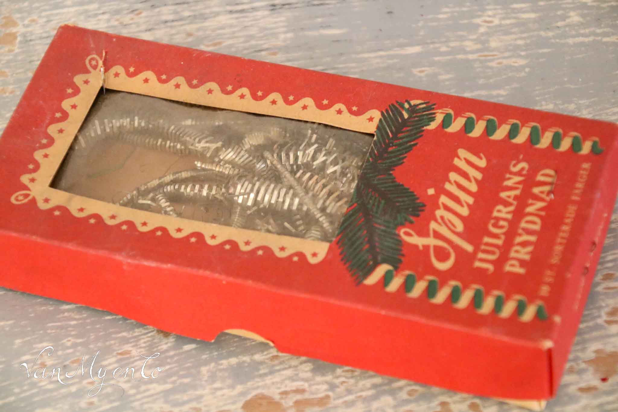 Ze zijn heel decoratief en ze zitten nog in het originele doosje. Deze echte zilveren pegeltjes werden in de kerstboom gehangen. Daar schitterden ze bijzonder mooi.