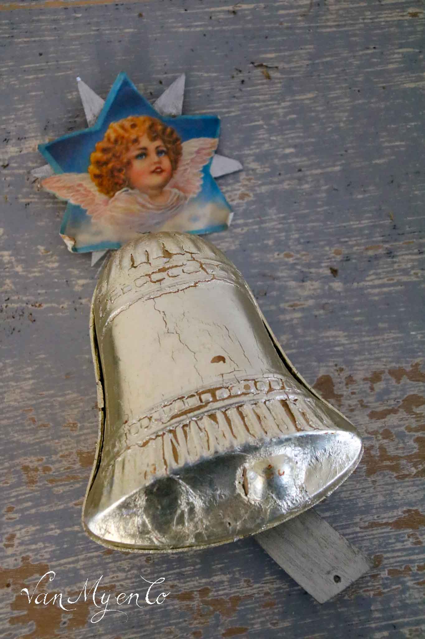 Old paper mache Christmas bell candy container with star and angel. Dimensions (without star) 13 x 13 x 6 cm