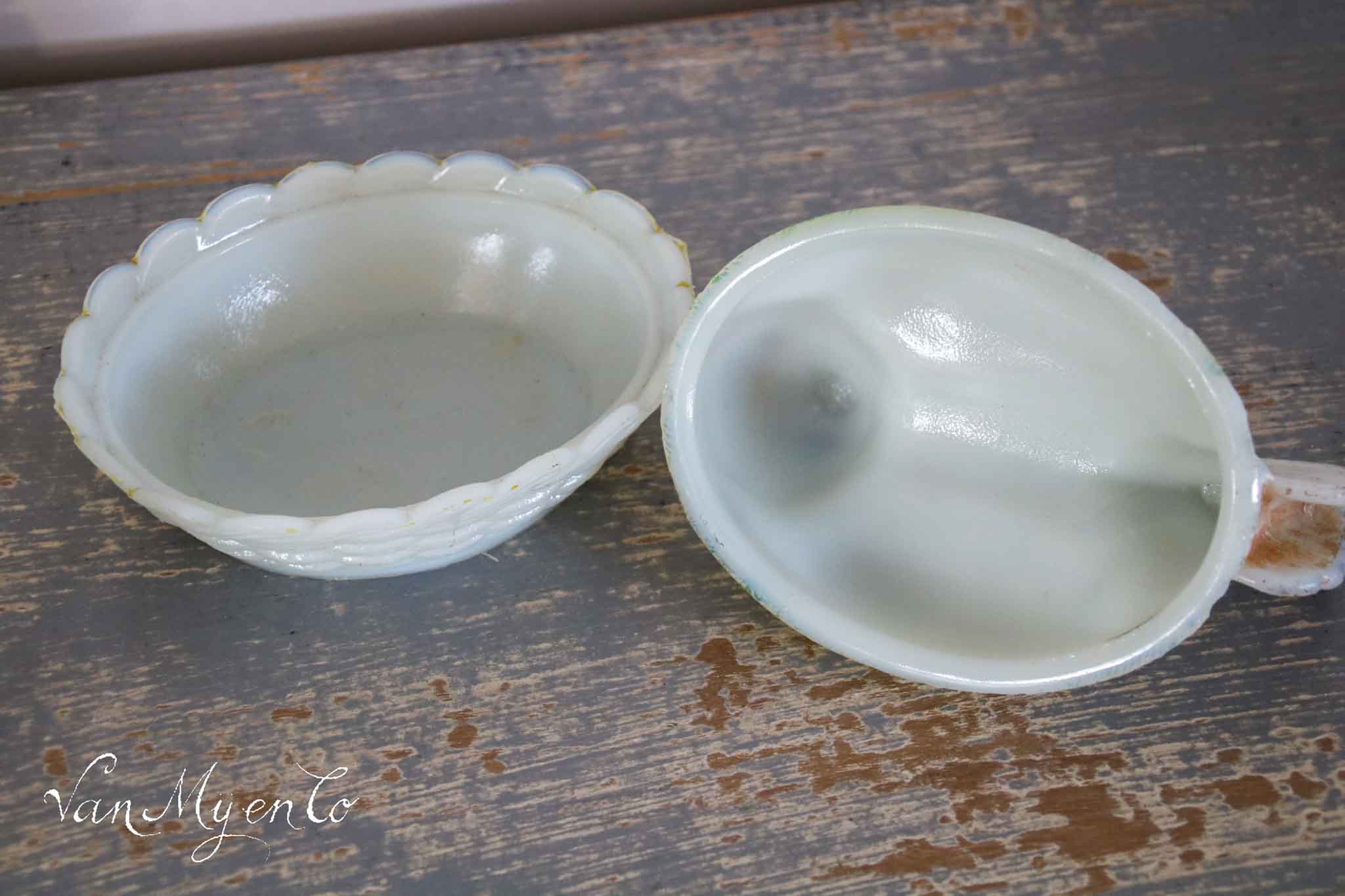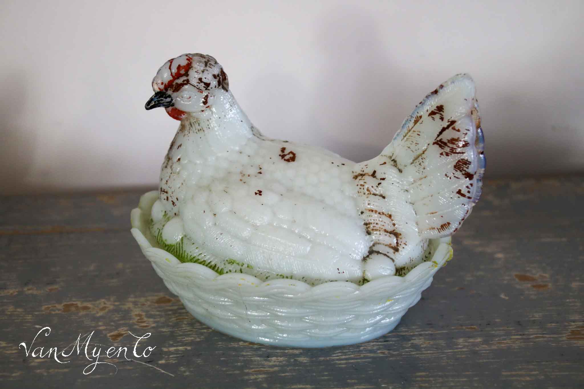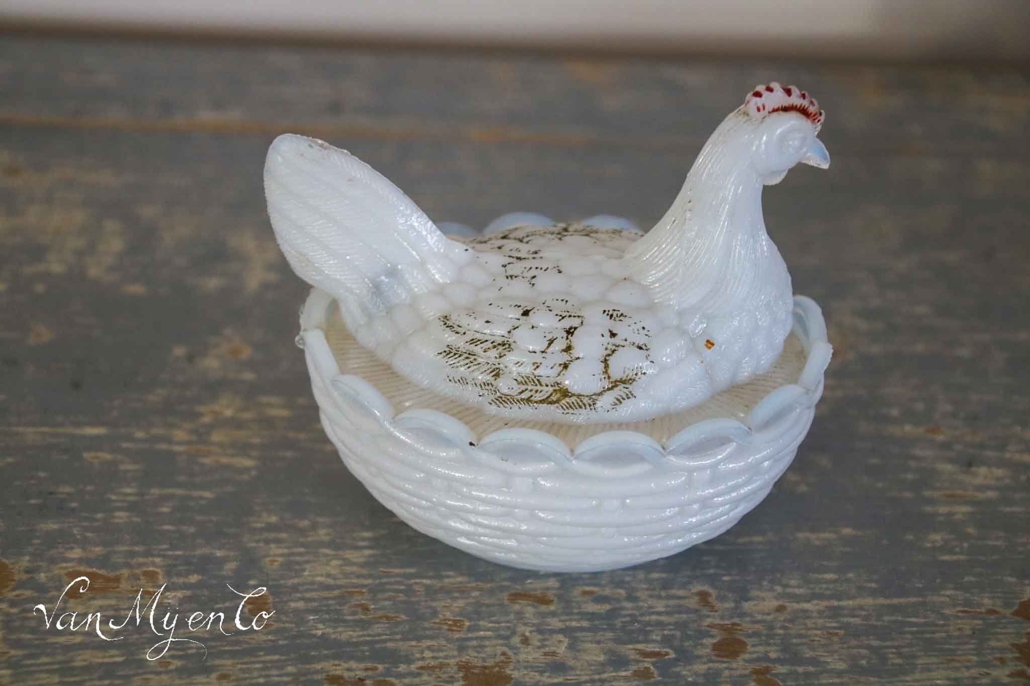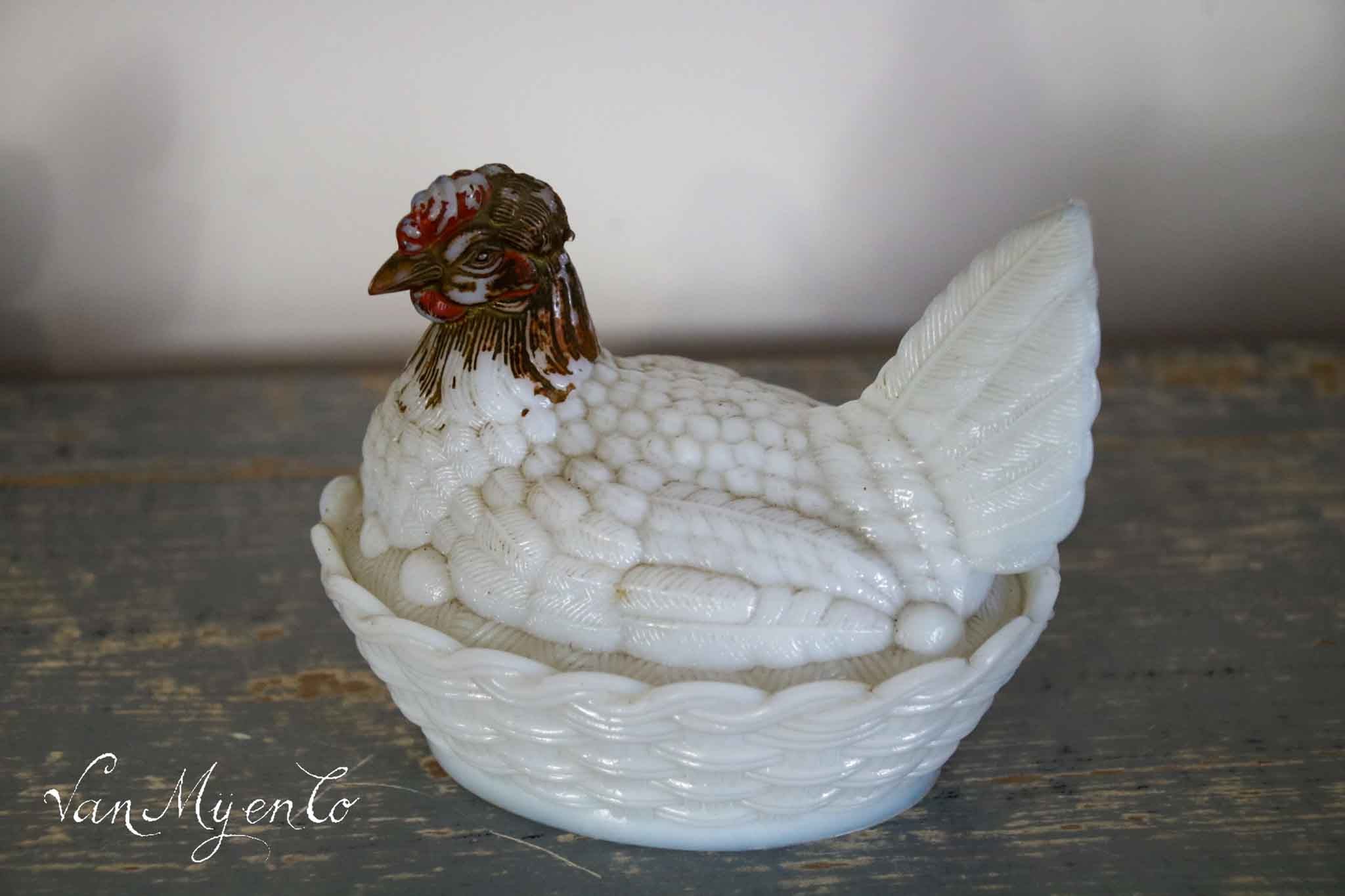 I love them, they are so decorative, these antique opaline chickens.