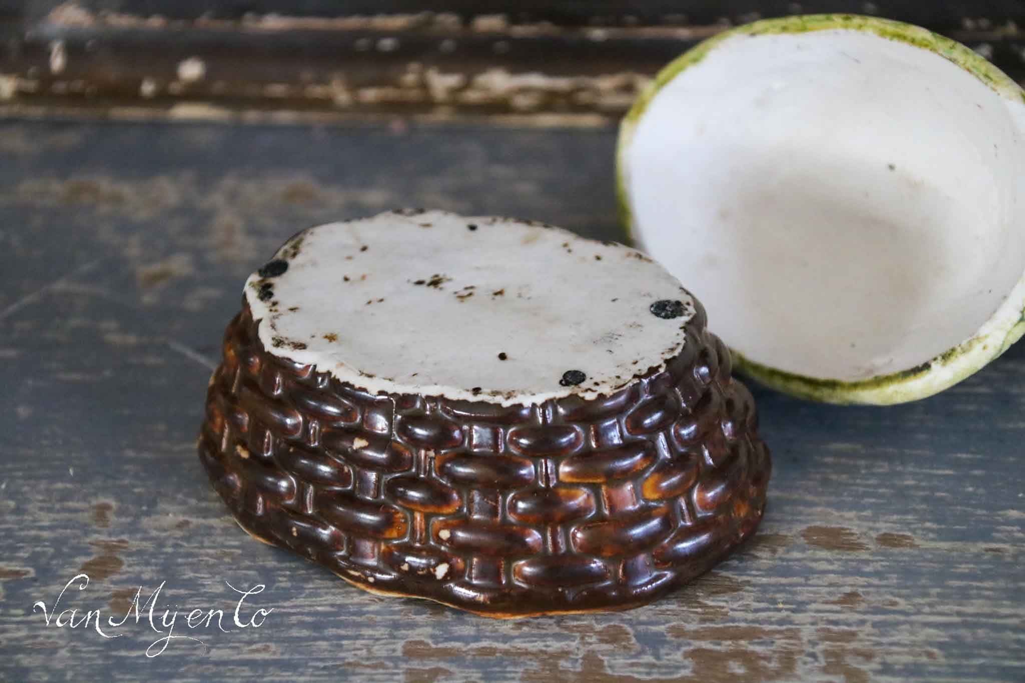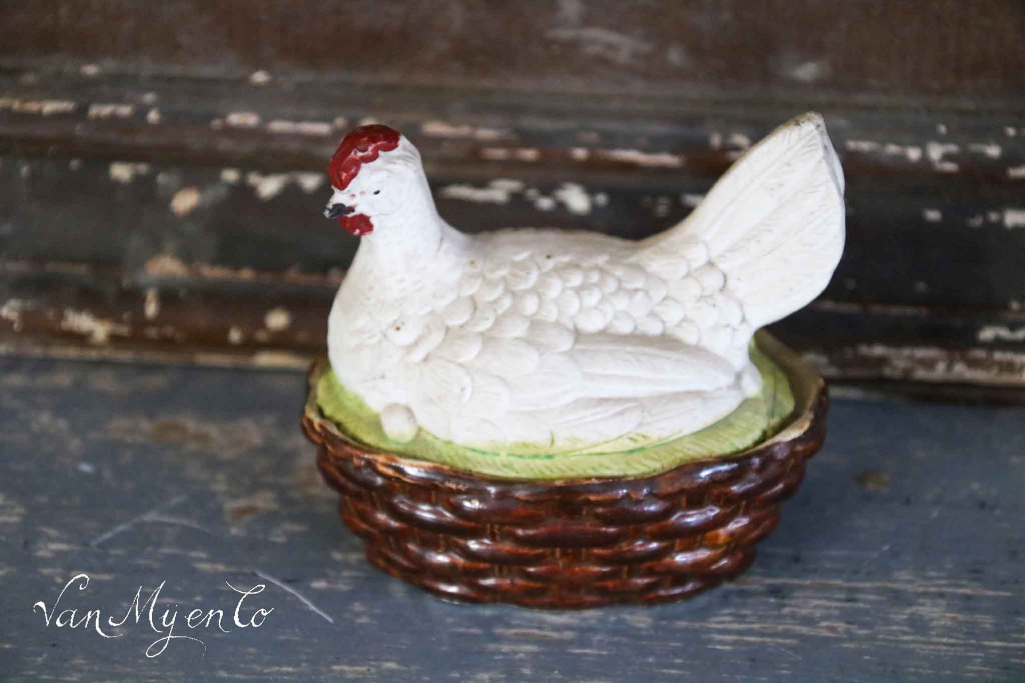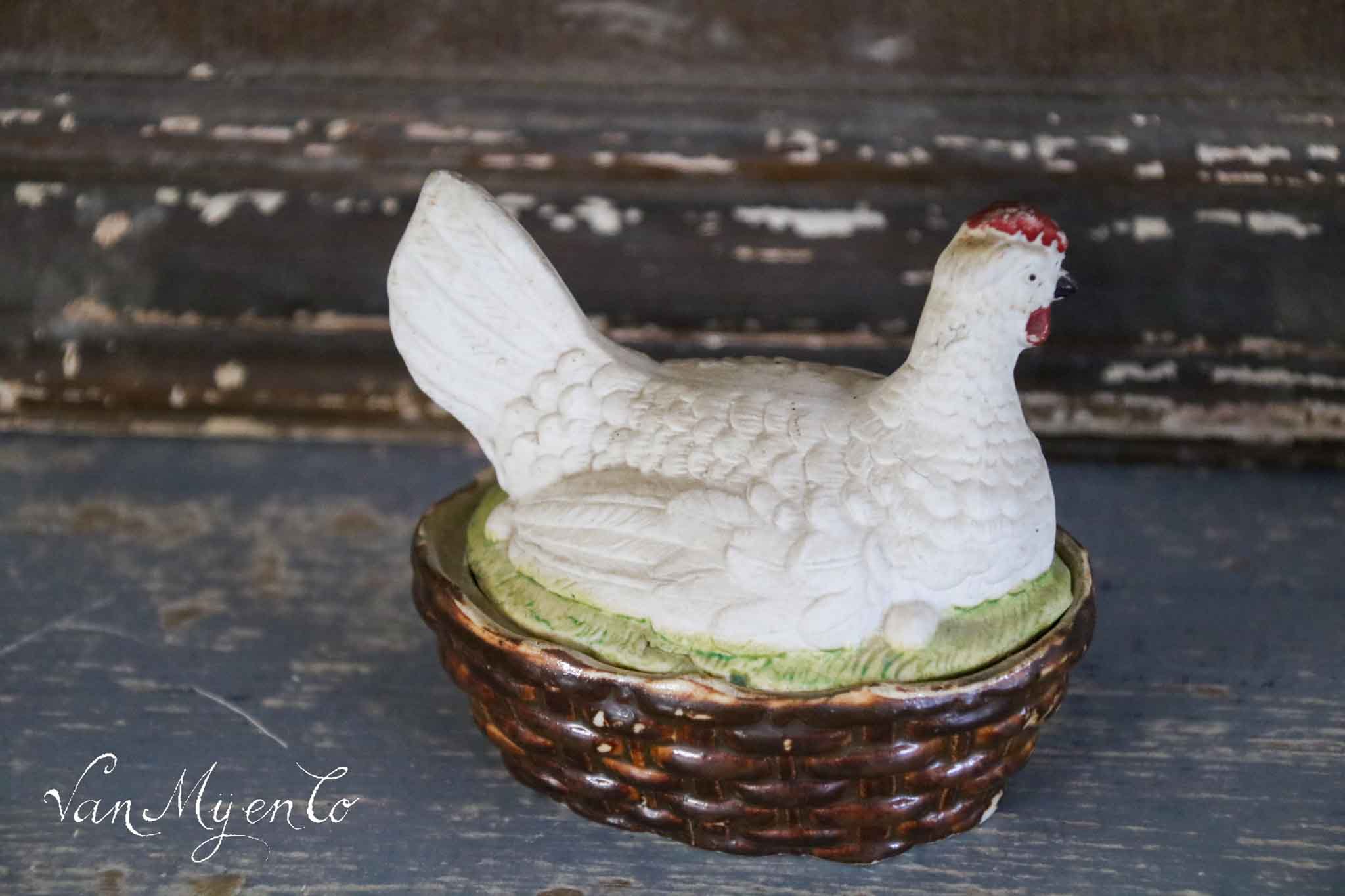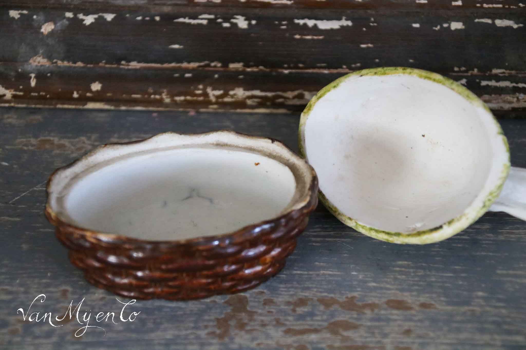 The nest was glazed. The chick itself was only subtly colored. The chick itself is made of biscuit porcelain.